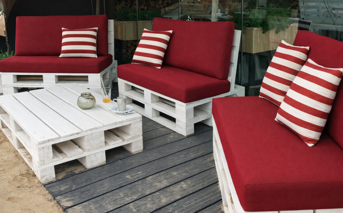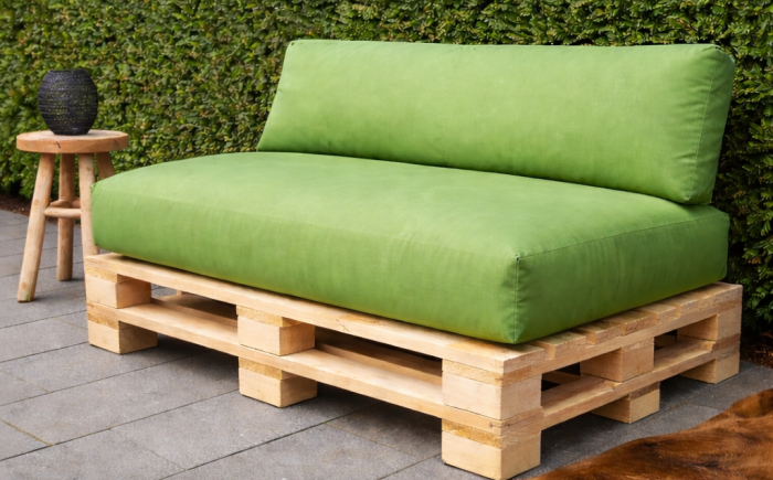 Meubels gemaakt van pallets zijn in verschillende afmetingen verkrijgbaar, de standaard afmeting van een euro pallet is 120x80 cm, maar het kan zijn dat je de diepte hebt aangepast naar bijv. 60 cm. Voor deze palletbanken kun je ook terraskussens bestellen, deze kussens worden voor jou op maat gemaakt. Hiervoor kun kun je het beste contact met ons opnemen. Wij kunnen alle gemaakte palletbanken van een horecakussen op maat voorzien. Dan kun je zelf een stof, vulling en afwerking kiezen. Hiervoor betaal je iets meer, maar dan heb je straks wel een uniek buitenkussen. Op deze manier creëer je een op maat gemaakt palletkussen, wat aan al jouw wensen voldoet. Palletmeubels zijn vaak diepe meubels. De zitdiepte is vaak 80 cm diep. Daarom adviseert Horecakussen om voor de rug altijd een plofkussen te kiezen. Een plofkussen heeft een dikte variërend tussen de 15 tot 20 cm. Voor een strak zitkussen is een polyether SG35 een zeer goede keuze, deze heeft een lange levensduur en is geschikt voor intensief gebruik.